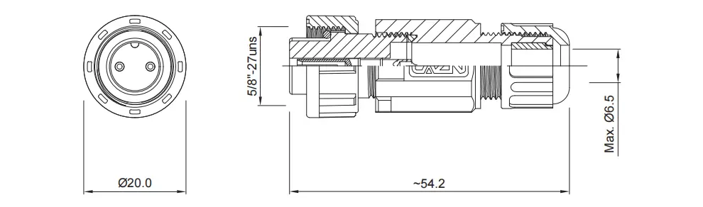 | E10 قابس أنثى مستقيم قابل للتثبيت (ملولب) | 60 فولت | 5 أ | 7 | E10T-S7-PWA06 | ↓ | ↓ |